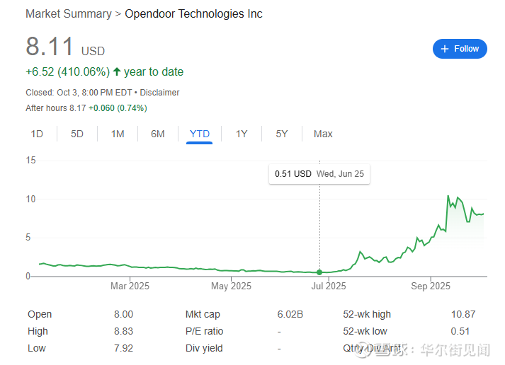 一家成立以来年年亏损的房地产科技公司Opendoor,在2025年上演了资本狂欢。