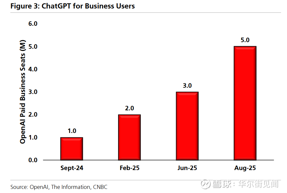 在用户结构方面,OpenAI最近披露其付费企业用户数量已突破500万,较6月的300万增长60%。如果总付费用户数为3500万的估算准确,企业用户约占付费用户基数的15%,不过,行业观察人士认为开发者日不太可能重点关注企业级新功能。