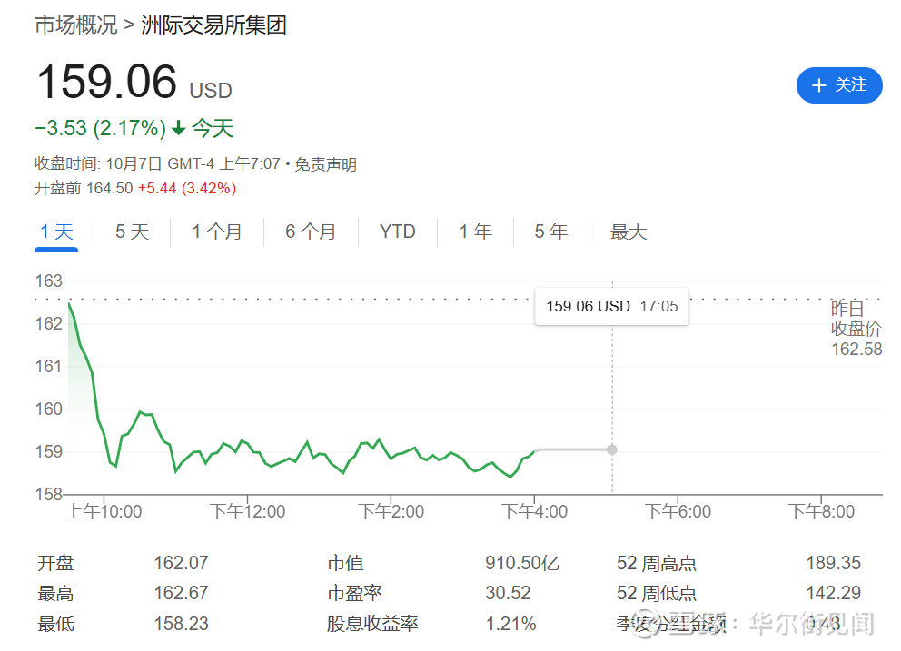 受该消息影响,洲际交易所股价周二盘前一度上涨4.4%。