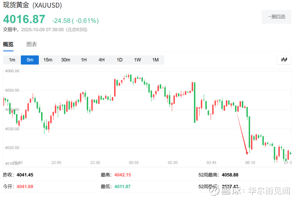消息传出后,避险资产出现明显回调。黄金价格短线下挫33美元,一度跌至4011美元。