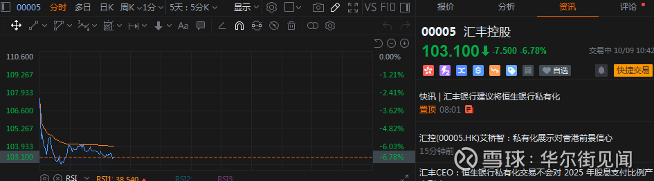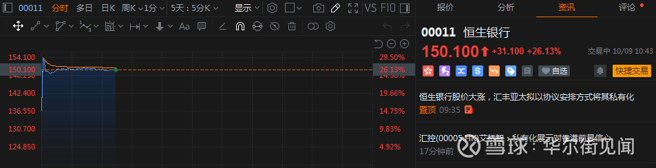 公告发布后,汇丰控股港股股价重挫逾6%,恒生银行暴涨超26%,势创历史最大单日涨幅。