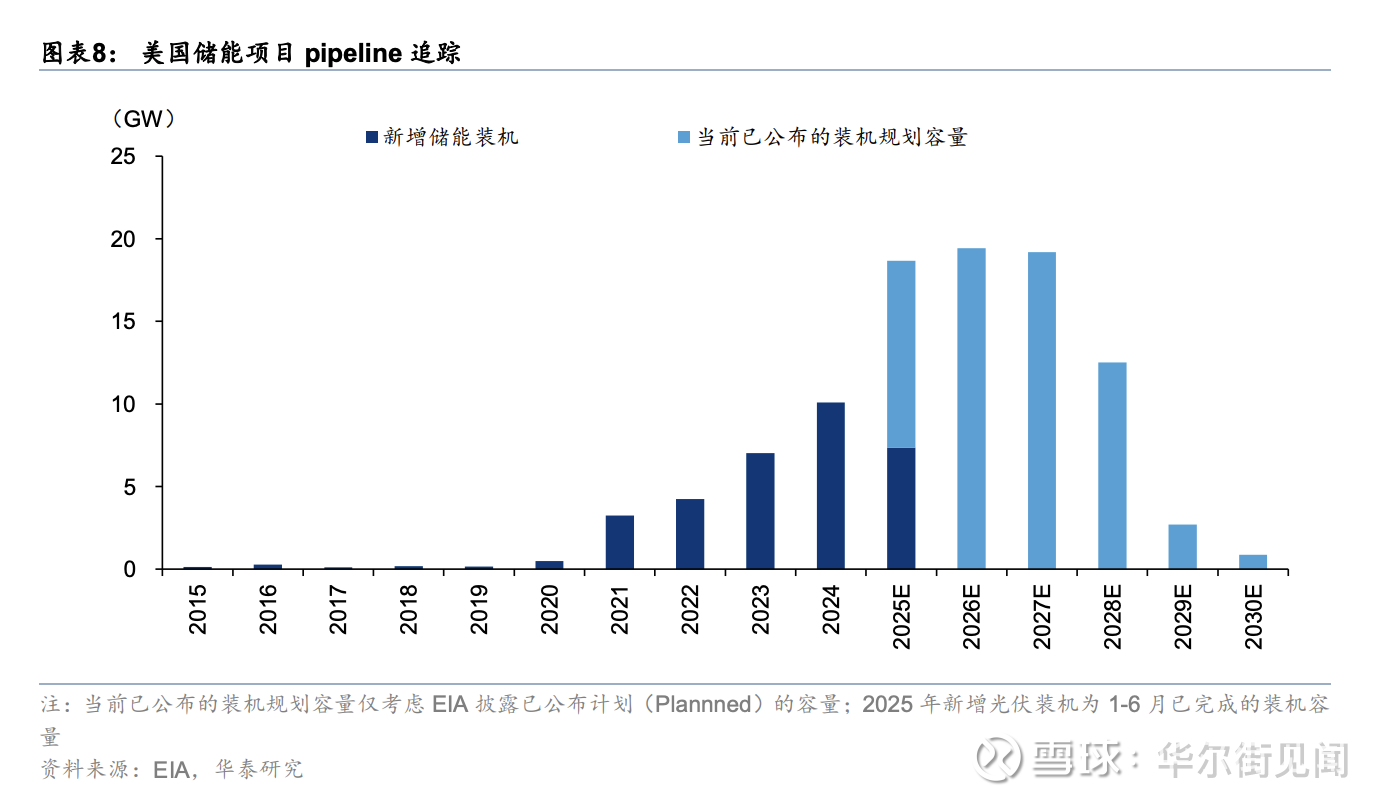 储能成为近期缓解方案的关键选择煤电退役放缓可部分缓解压力。按照EIA最新统计,美国25/26两年将分别退役6.2GW/3.4GW煤电,累计造成9.6GW存量替代需求。华泰证券测算显示,在煤电半数推迟退役的情景下,短期负荷仍有11-20GW的缺口。
