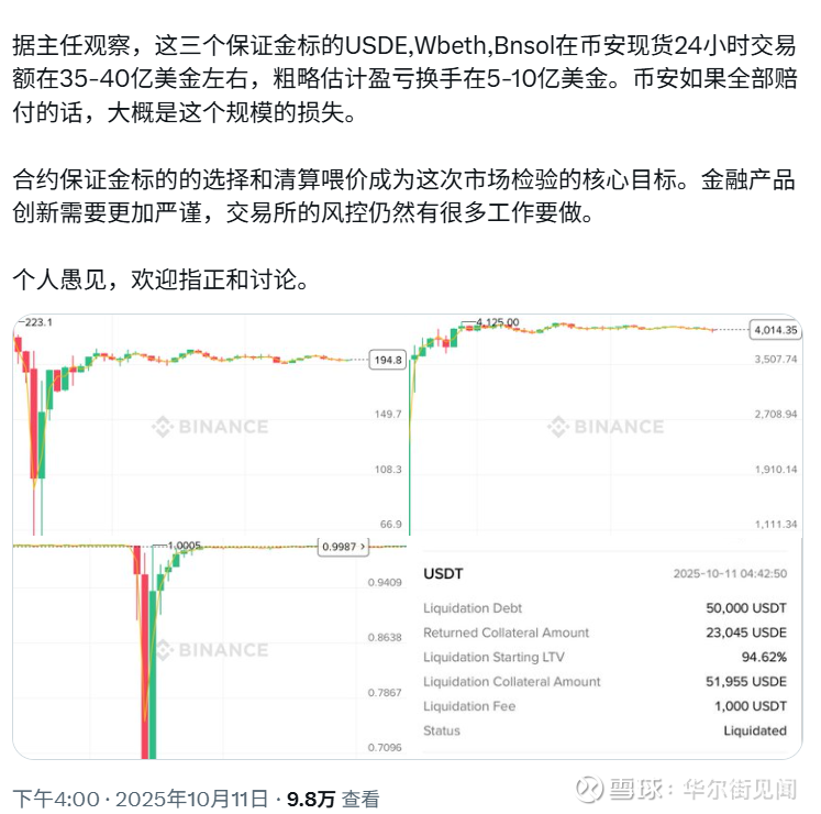 与此同时,有观点直指此次暴跌并非简单的市场行为,而是一场利用币安系统漏洞、由特定资产脱锚引发的“定点攻击”。