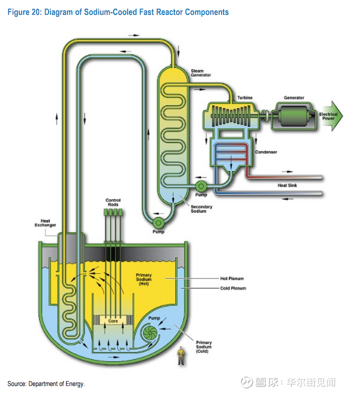 钠冷快堆(SFR)使用液态钠作为冷却剂,在快中子谱下运行,可实现燃料再利用并减少核废料。Arc的ARC-100(100兆瓦)、Oklo的Aurora-INL(75兆瓦)和TerraPower的Natrium(345兆瓦)是主要开发项目。TerraPower的Natrium项目预计2032年投运。