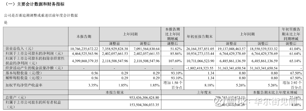 公司当季实现营业总收入达到107.7亿元,同比增长51.82%。 归属于上市公司股东的净利润44.6亿元,较去年同期大幅增长85.86%。
