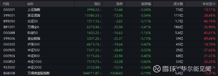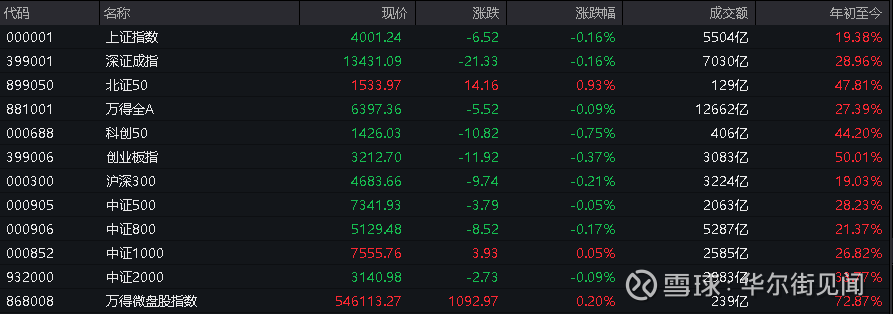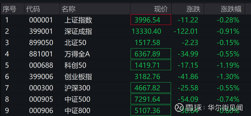 创业板跌超1%,沪指跌0.19%,深成指跌0.73%,CPO、AI芯片、量子科技、PCB等方向跌幅居前,沪深京三市下跌个股超3100只。