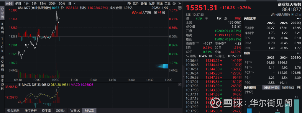 A股商业航天板块短线拉升,上海沪工直线触及涨停,航天智装涨超6%,上海瀚讯、航天动力、航天科技跟涨。