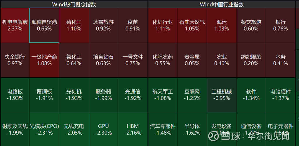 A股早间震荡收跌,三大指数盘中集体翻红,午盘收跌,创业版跌0.37%。有机硅、磷化工、氟化工、海南自贸区等板块领涨;机器人、量子科技、信创、AI应用等板块领跌。港股收跌,恒指跌1.14,科指跌至2%,科网股普跌,光伏太阳能股走强。国债多数转跌,商品涨跌参半。