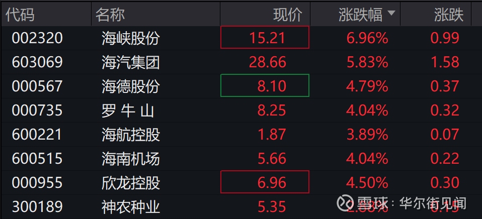 A股海南自贸区板块高开,海马汽车涨停,海南发展、康芝药业、欣龙控股、凯撒旅业、海峡股份跟涨。