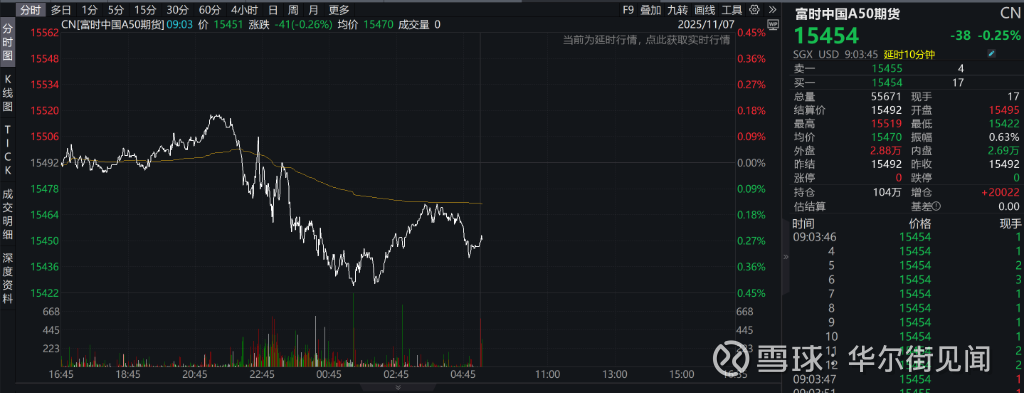 富时中国A50指数期货盘初跌0.31%,上一个交易日夜盘收跌0.28%。