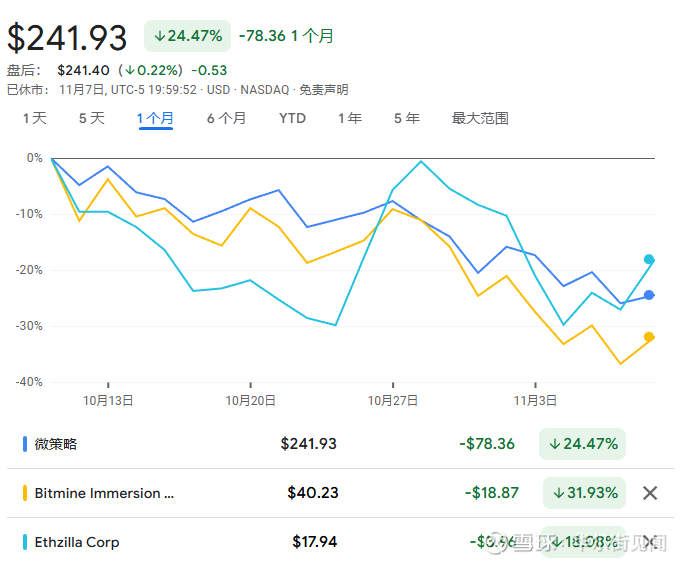 这一模式由Michael Saylor在2020年开创,将一家名为MicroStrategy的小型软件公司转型为比特币巨鲸。该公司市值在去年7月曾触及约1280亿美元峰值,如今已缩水至约700亿美元。过去一个月,MicroStrategy股价下跌25%,比特币同期跌幅为15%。