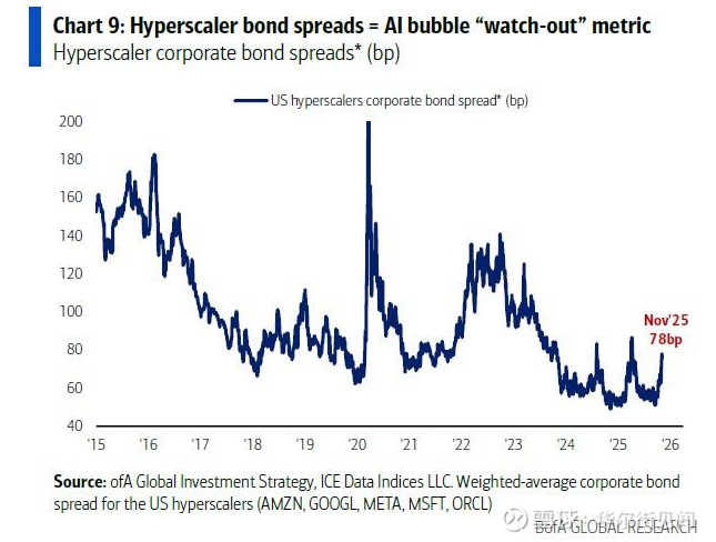 影响并非局限于单一公司。根据美国银行的数据,由所谓“超大规模供应商”(hyperscalers)——包括Alphabet、Meta、微软和甲骨文等正在建设庞大数据中心的公司——发行的一篮子债券,其收益率相对于美国国债的利差已攀升至0.78个百分点。