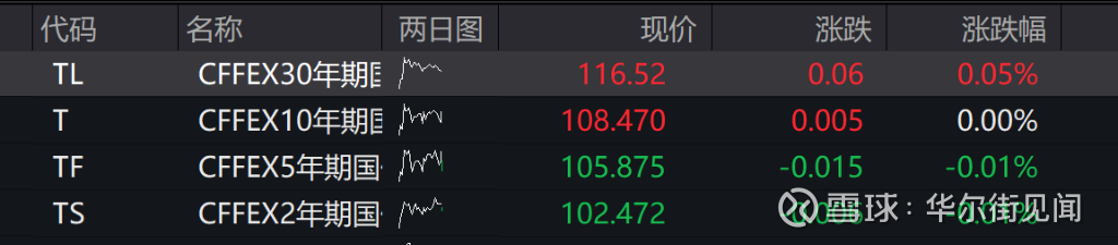国债期货开盘,30年期主力合约涨0.09%,10年期主力合约涨0.04%,5年期主力合约涨0.02%,2年期主力合约基本持平。