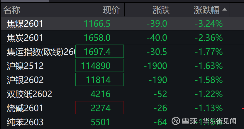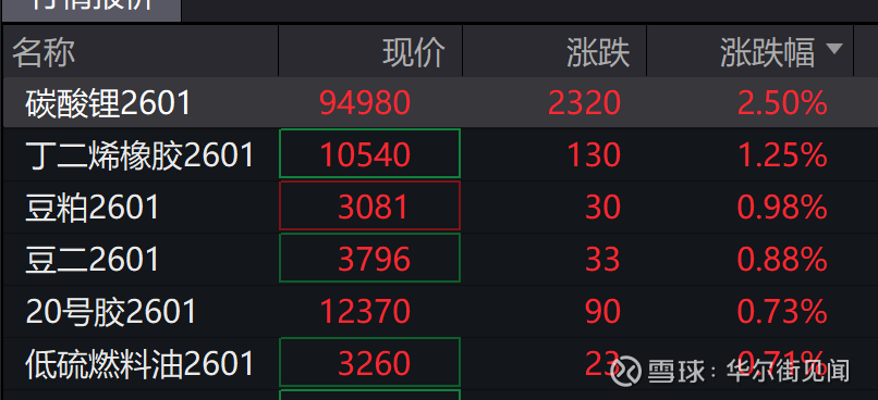 商品期货开盘,碳酸锂主力合约涨超3%,BR橡胶涨超1%。焦煤跌超3%,焦炭、多晶硅跌超2%,集运欧线、甲醇、沪银、沪镍、烧碱、纸浆跌超1%。