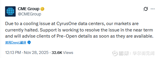 故障源头指向第三方数据中心服务商CyrusOne的制冷系统,凸显金融市场基础设施对技术稳定性的高度依赖。芝商所在公告中明确指出:“由于CyrusOne数据中心的制冷问题,我们的市场目前处于暂停状态。”