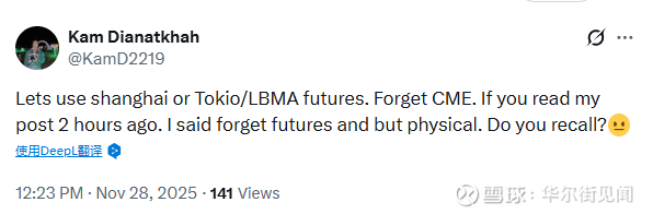 对于这一突发状况,部分投资者开始呼吁转向其他市场或实物资产。网友Kam Dianatkhah表示:“忘了芝商所吧。正如我两小时前所说,忘掉期货,买入实物。”他还建议投资者转战上海、东京或伦敦金银市场协会(LBMA)的期货市场。