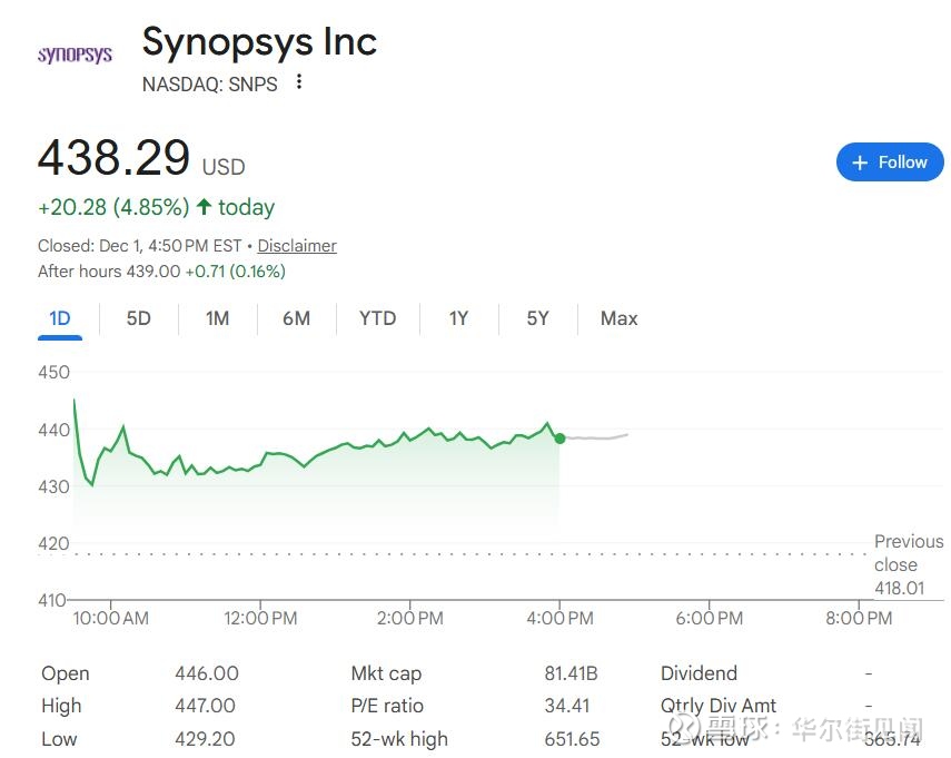 20亿美元入股细节:折价配售与战略意义根据两家公司周一发布的声明,英伟达以每股414.79美元的价格购买了新思科技约480万股股票,较上周五收盘价折让约0.8%。这些股票通过私募配售方式发行。