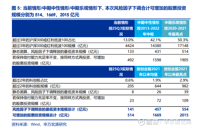 最后,报告再次强调,与提升整体配置比例所能带来的万亿级潜力相比,此次风险因子下调释放的千亿级空间仅是边际提振。