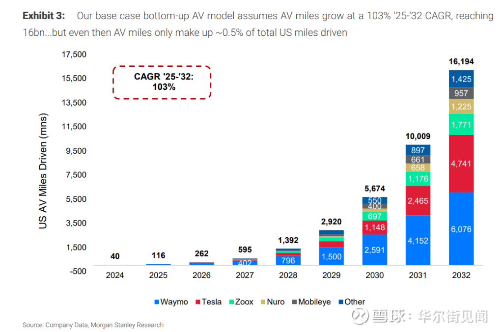 市场爆发性增长: 预计从2025年到2032年,美国自动驾驶里程将增长140倍,达到160亿英里。