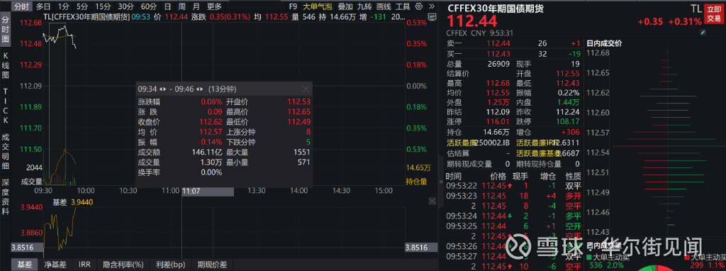 中国30年期国债期货盘中一度上涨0.53%,创11月17日以来最大涨幅,目前涨幅收窄至0.35%。