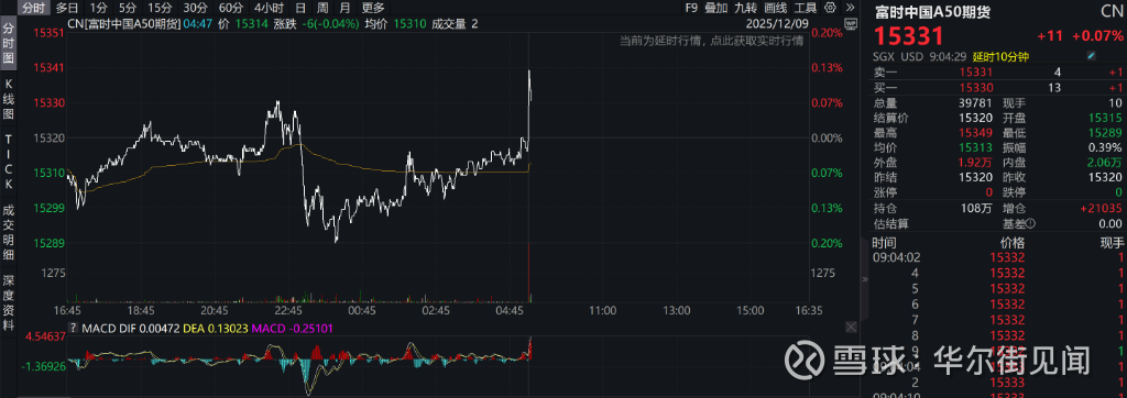 富时中国A50指数期货盘初涨0.06%,上一个交易日夜盘收跌0.01%。
