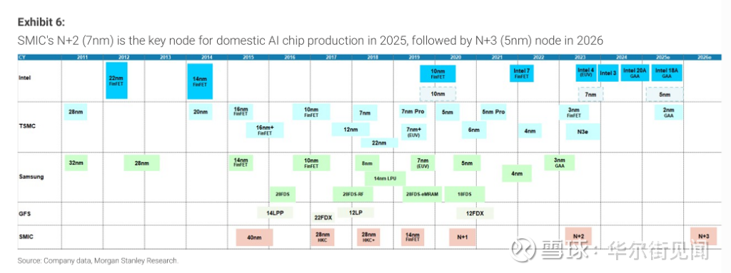 尽管存在这种分流效应,大摩依然维持对中芯国际的“增持”评级,并将其前景优于华虹半导体。分析师强调,SMIC的N+2(7nm)节点有望成为2025年国内AI芯片生产的关键技术点,而2026年的N+3(5nm)节点将进一步增强本土供给能力。
