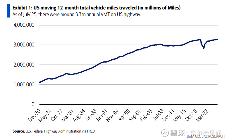 万亿市场空间:从1%到20%的跨越研报称,美国联邦公路管理局数据显示,截至2025年7月的12个月内,美国汽车总行驶里程约3.30万亿英里。剔除占比约10.4%的大型货车里程后,乘用车年均行驶里程约3万亿英里。