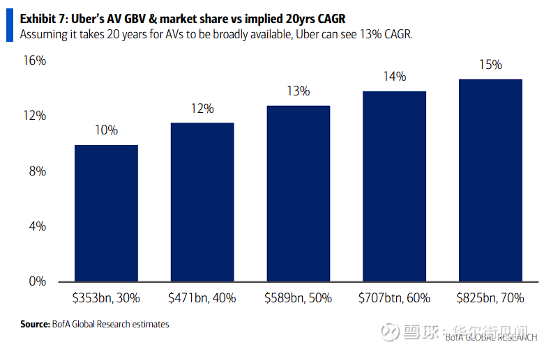 乐观情景下,若优步守住70%市场份额,订单量可达8250亿美元,年复合增长率达20%。