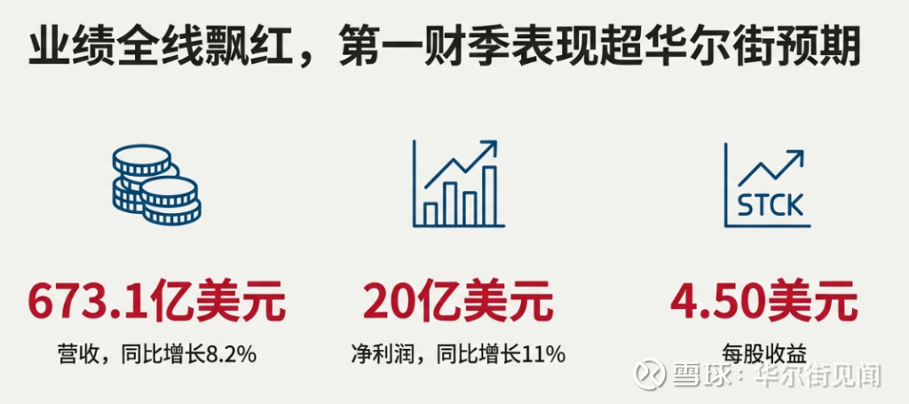 公司第一财季营收673.1亿美元,同比增长8.2%,这个数字超出了华尔街预期。