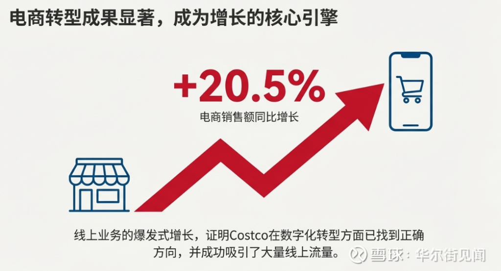 真正值得关注的是电商业务的爆发。电商销售增长20.5%,网站流量增24%,App流量更是飙升48%,这些数据显示Costco终于在电商转型上找到了感觉。