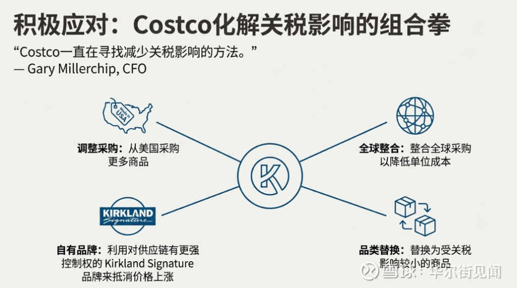 Millerchip在财报电话会议上表示,Costco一直在寻找减少关税影响的方法,包括从美国采购更多商品、整合全球采购以降低商品成本,以及将商品类别或商品替换为受高额关税影响较小的类别或商品。