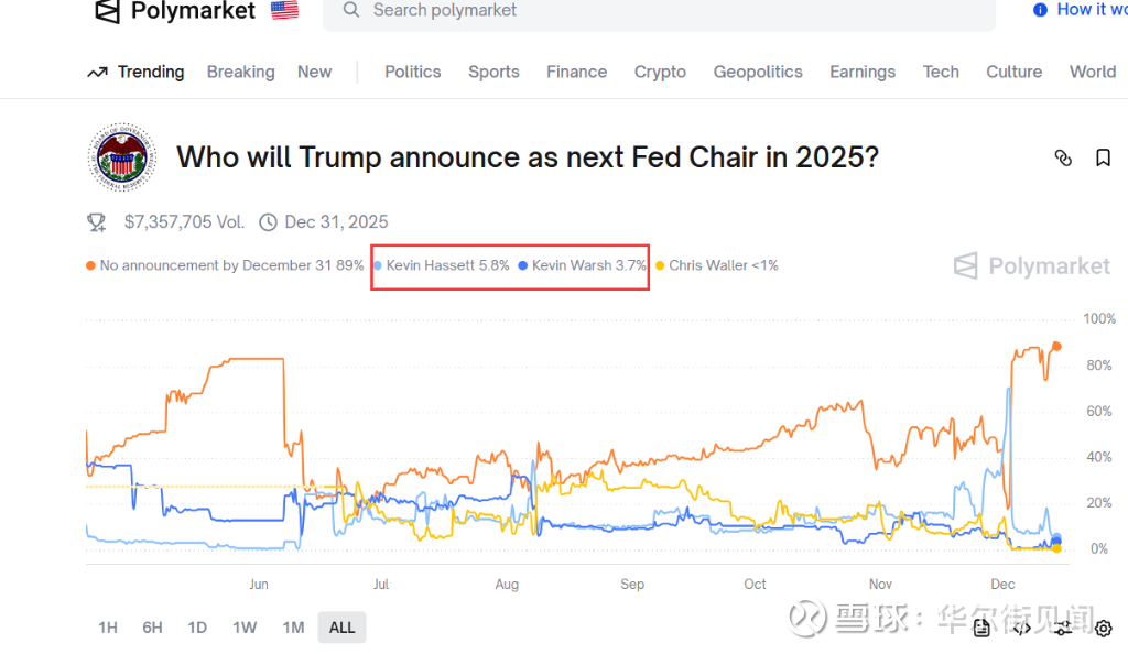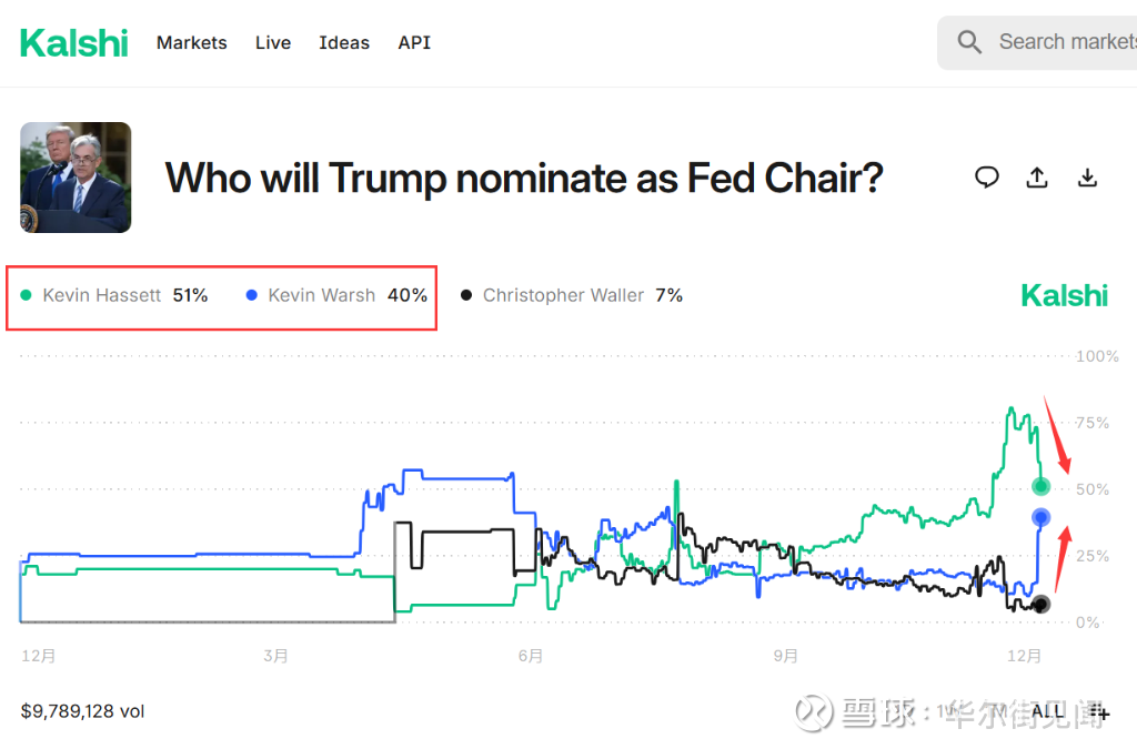 这表明,尽管沃什的胜算显著提高,但哈塞特的领先地位目前还算稳固。