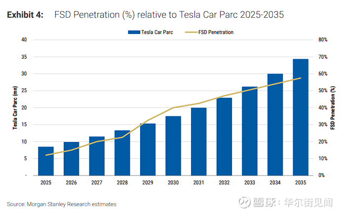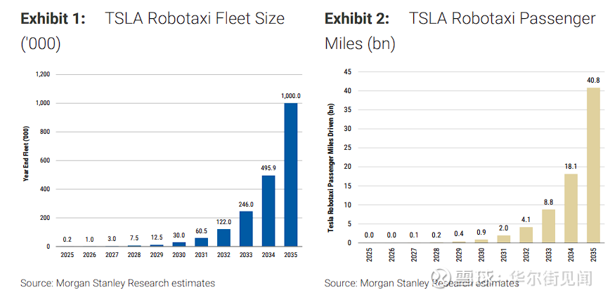 摩根士丹利认为,强大可靠的Robotaxi车队应当成为加速部署完全无监督个人FSD的明确前兆。