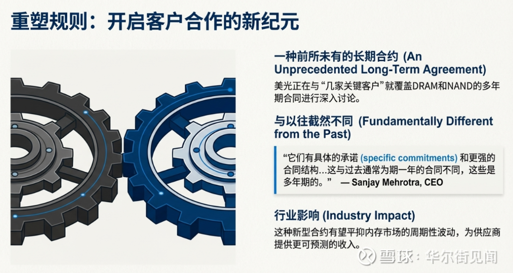 新型长期合同浮现,重塑客户关系供应短缺正在深刻改变内存供应商与客户之间的关系。Mehrotra透露,美光正在与“几家关键客户”就多年期合同进行深入讨论,这些合同不仅涵盖DRAM,也包括NAND。