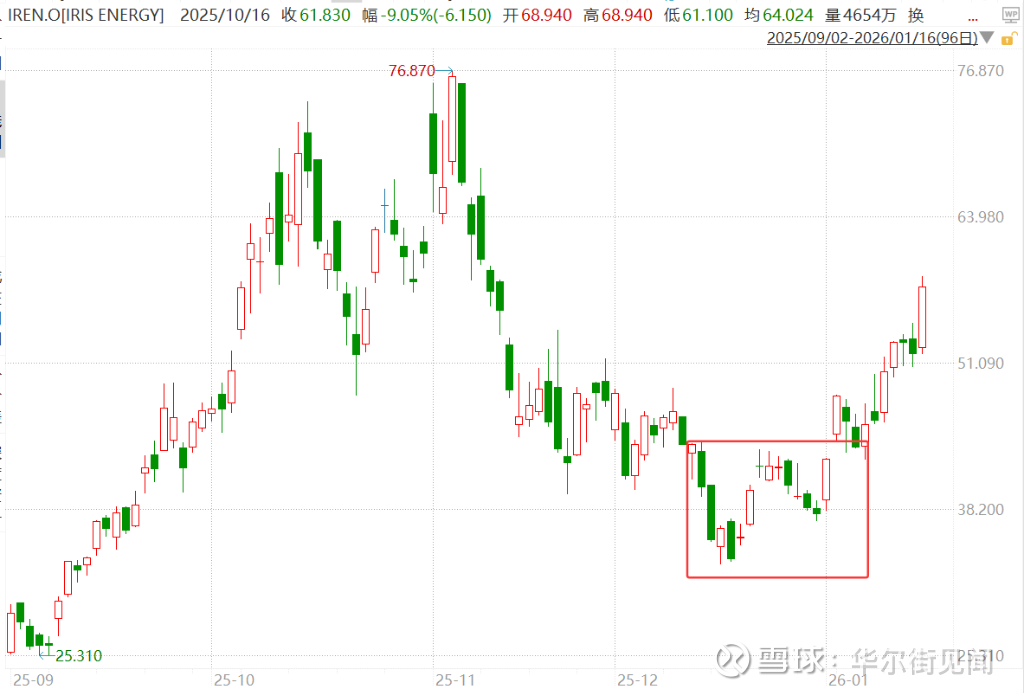 Zacks研究指出,Iren销售额预计今年增长约120%,明年在此基础上再增约151%。技术面上,股价形成W底后上破,这被视为上升趋势早期阶段的典型特征之一。