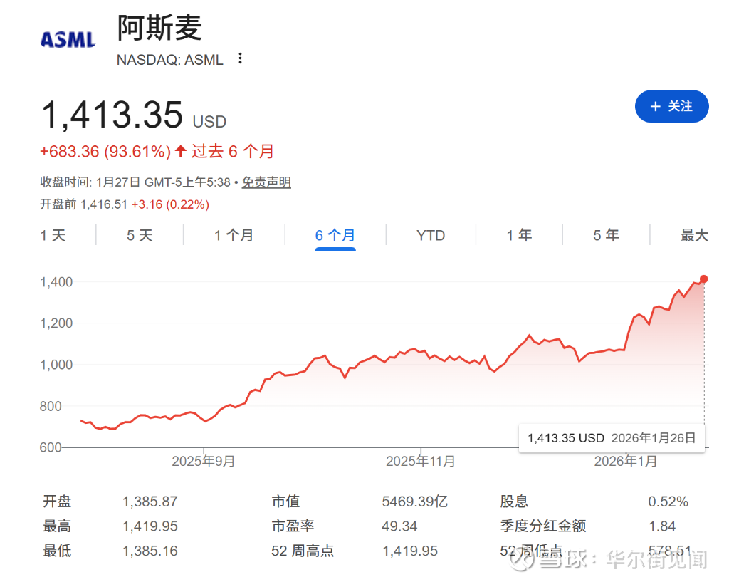 阿斯麦将于本周三(1月28日)公布财报,投资者正密切关注其销售预测。受芯片供应紧张及客户扩大投资迹象的推动,阿斯麦股价自去年4月以来已翻倍,本月涨幅达25%,市值突破5000亿美元,稳居欧洲最有价值科技公司之列。据相关媒体报道,摩根士丹利已维持其“增持”评级,并将目标价定为1400欧元,预计即将公布的第四季度订单数据将大幅超出市场预期。