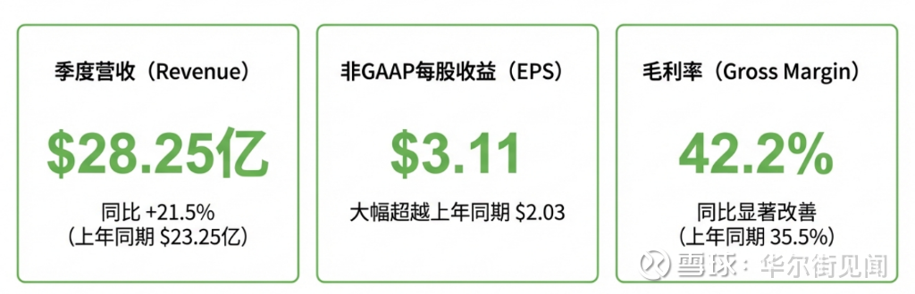 财报称,公司预计Q3营收约为29亿美元(上下浮动1亿美元),非GAAP每股收益约为3.40美元(上下浮动0.20美元)。