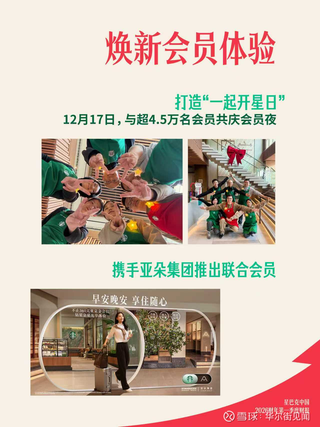 星巴克还致力于推动“星朋友圈”不断扩大,继与希尔顿集团、中国东方航空推出联合会员计划后,于2026年初与亚朵达成合作,实现双方全等级会员权益互通。