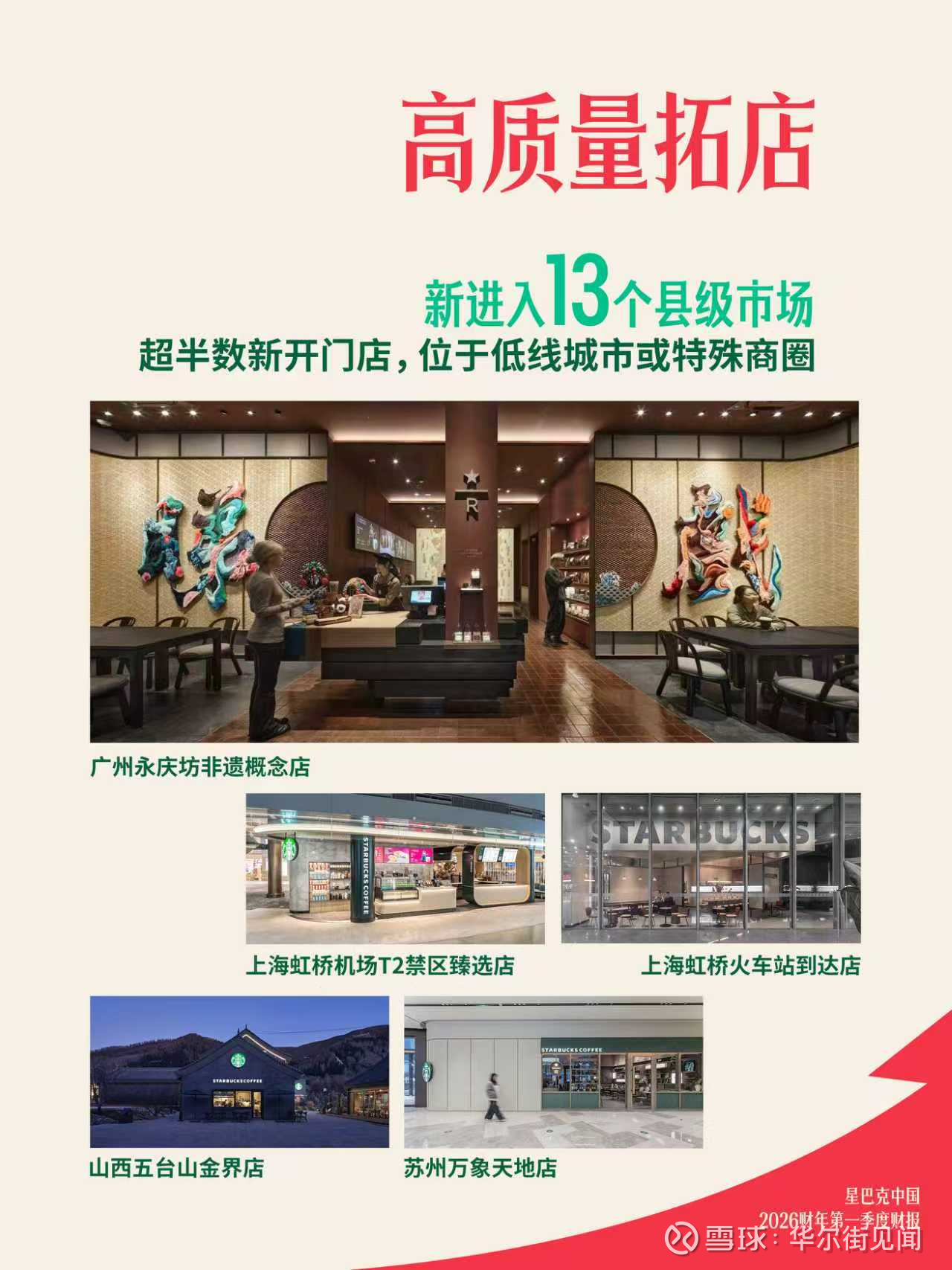 第一季度,星巴克中国新进入13个县级城市,超半数新店位于低线城市或特色商圈,进一步加深市场覆盖。截至2026财年第一季度末,星巴克已在全国1103个县级市开设8011家门店。