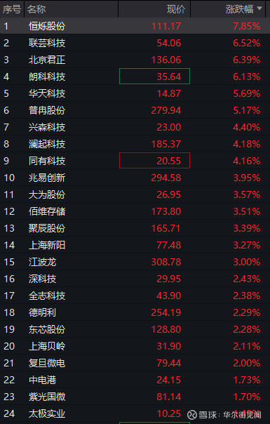 早盘存储芯片概念回暖,中微半导涨超10%,恒烁股份、朗科科技、商络电子、普冉股份、北京君正跟涨。