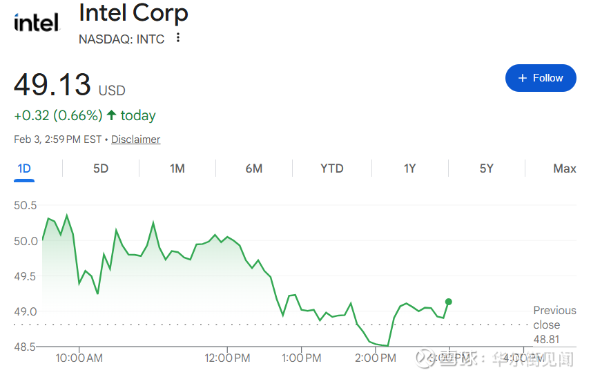 (周二英特尔股价日内走势)