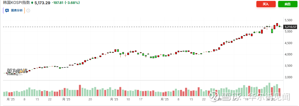 韩国市场承压最重,Kospi指数跌3.68%。三星电子和SK海力士分别下跌4.14%和4%。