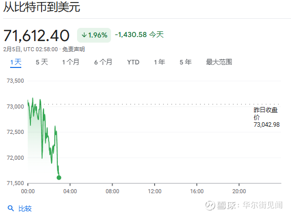 比特币在科技股抛售潮中同步走弱,下跌超过3%,盘中一度跌破73000美元关口后进一步下跌。