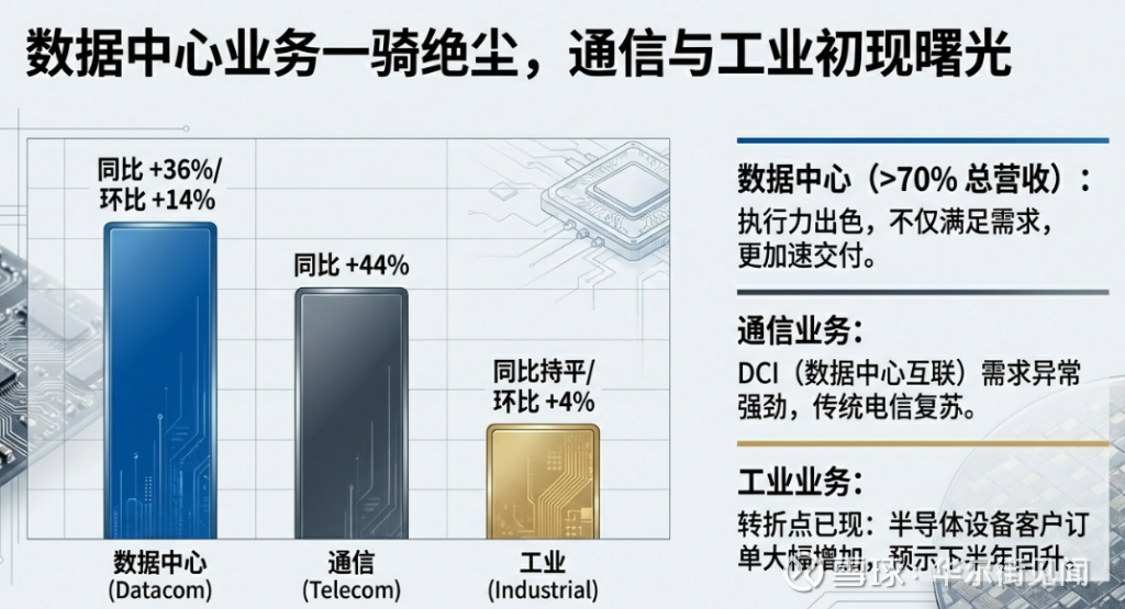 公司称受AI数据中心建设带来的阶跃式需求拉动,数据中心相关业务订单出货比(Book-to-Bill)超过4倍,可见性甚至延伸至2027年,这类指标通常比单季营收更能反映景气趋势与供需紧张程度。