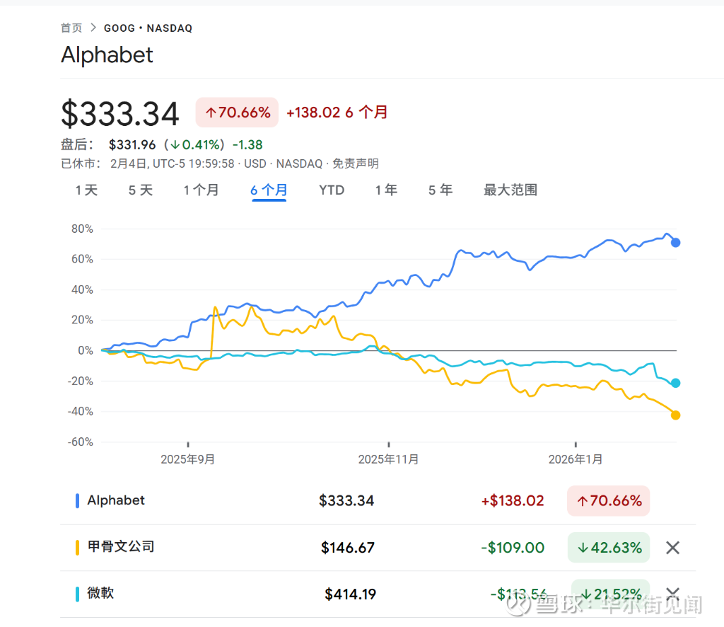 华尔街对OpenAI的态度正在经历戏剧性逆转。曾经被市场追捧的OpenAI合作概念股如今遭遇抛售,微软、Oracle等公司股价大幅下挫,而与OpenAI竞争的谷歌母公司Alphabet则凭借AI业务的强劲财务回报成为最大赢家,股价自去年10月以来飙升约36%。
