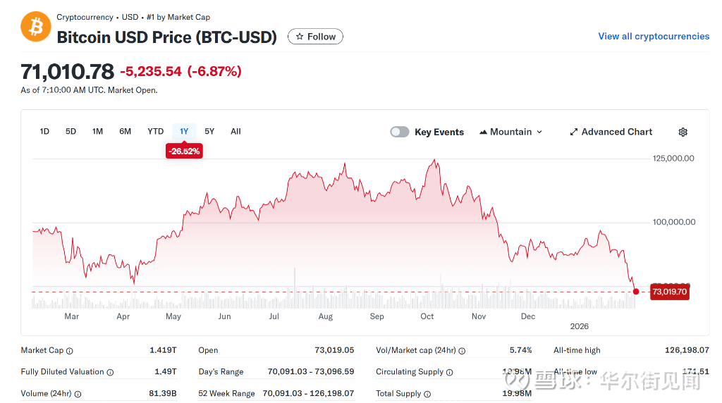 比特币正在经历从纯粹投机资产向机构化资产的痛苦转型。这一全球最大加密货币2月3日跌至约73000美元,较去年10月约125000美元的峰值下跌超40%。标志着所谓"小飞侠效应"(Tinkerbell Effect)阶段的终结——即仅靠信仰支撑的投机热潮正在退却。