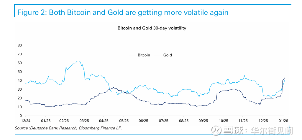 全年表现更加鲜明。2025年黄金录得65%的回报,而比特币下跌6.5%。这表明比特币不再充当"数字黄金"的角色。值得注意的是,尽管黄金近期也显示出类似加密货币的波动性,但支撑黄金需求的基本驱动力依然强劲——央行购买、地缘政治风险以及对避险资产的需求。