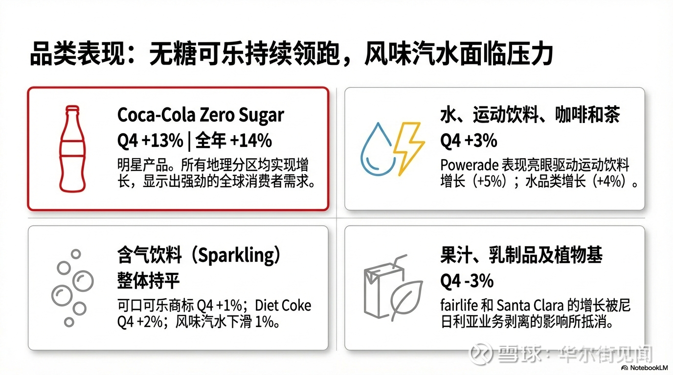 四季度业绩:零糖可乐仍是最大亮点回归到2025年第四季度的具体表现,可口可乐在核心业务上依然展现了韧性,尤其是“无糖化”策略成效显著: