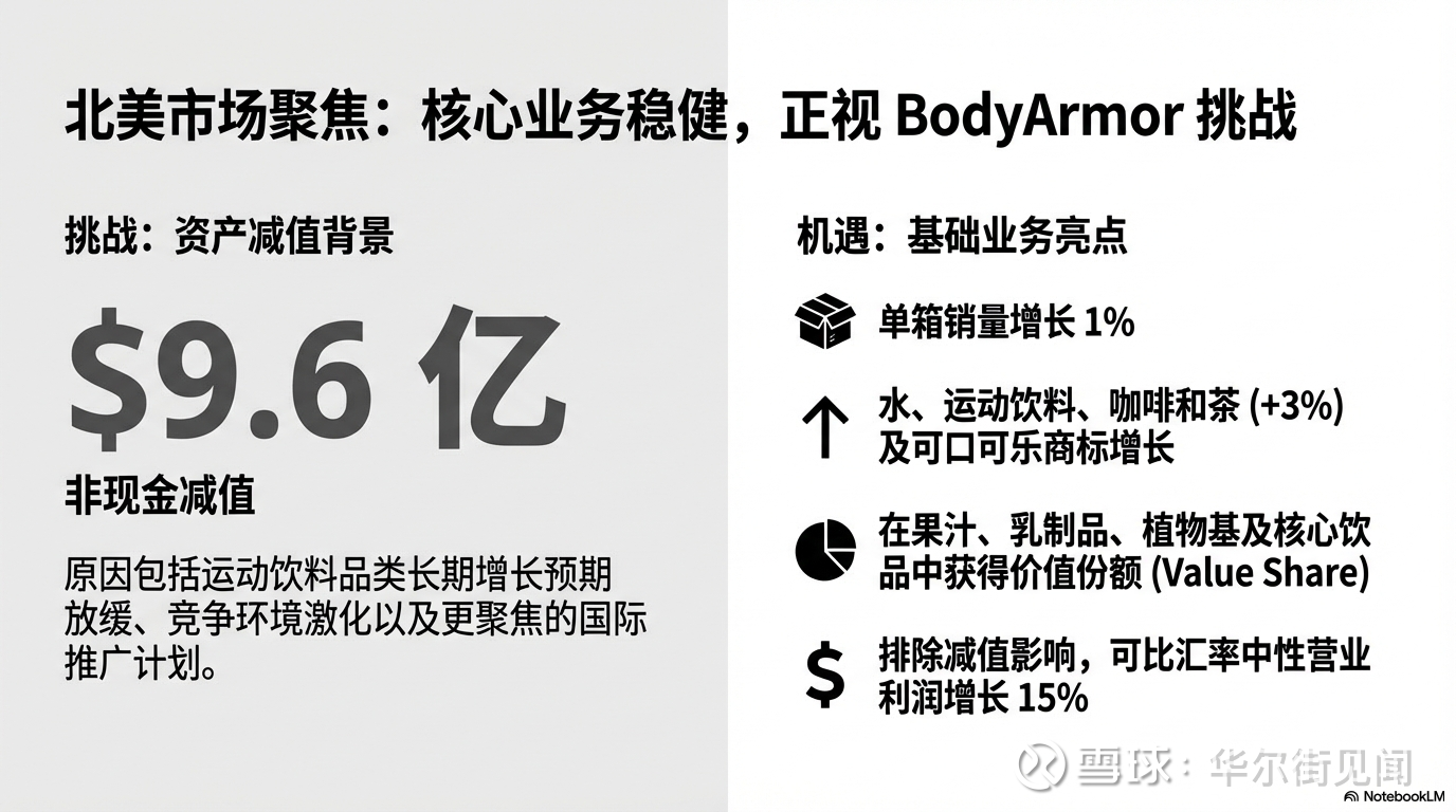 尽管营收端表现尚可,但北美市场的利润端却遭遇了“黑天鹅”。财报显示,四季度北美地区营业利润同比暴跌65%,主要原因是计提了与BodyArmor商标相关的9.6亿美元非现金减值费用。