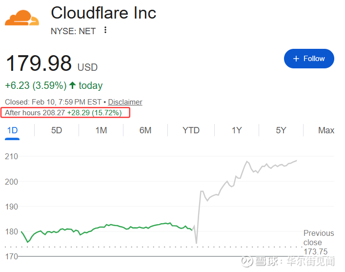 云服务提供商Cloudflare公布超预期业绩,AI需求激增推动公司实现2021年以来最快增长,盘后股价一度飙涨近16%。